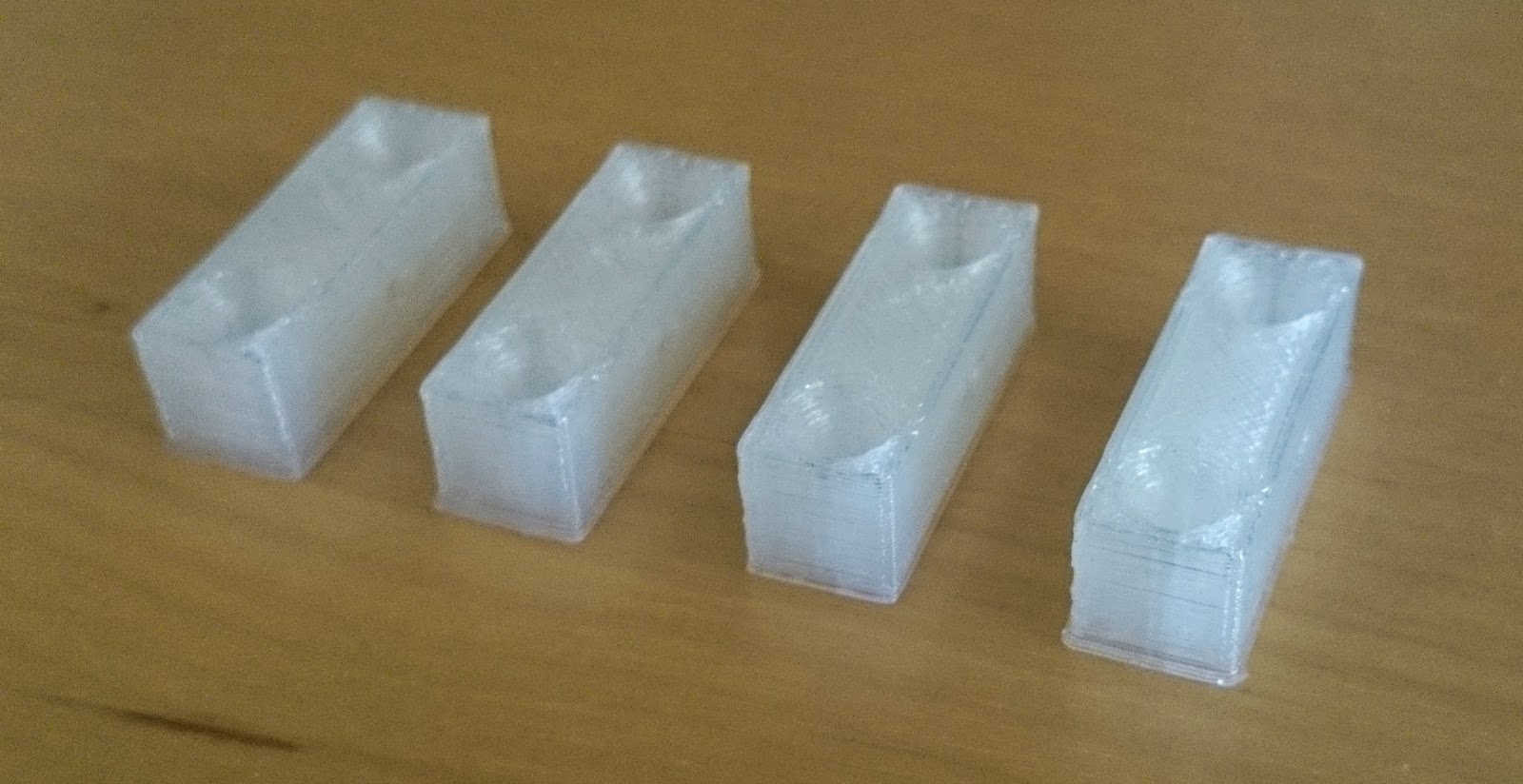 A két sikeresen kinyomtatott, de igen pici cucc után belekezdtem valami nagyobba. Megint előjöttek a Z tengely beállítási problémái. Az egyik oldalon jó, a másikon nem.